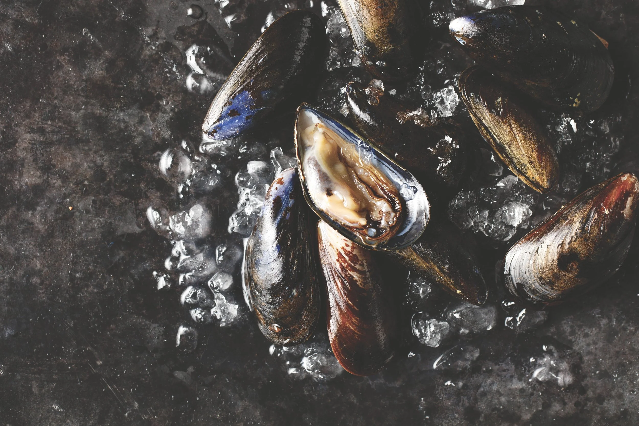 Raw Mussels on Ice